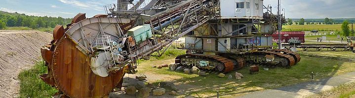 Wo früher riesige Tagebau-Löcher die Landschaft zerklüfteten, liegt heute das Leipziger Neuseenland. Zwischen dem Markkleeberger und der Störmthaler See zeigt der Bergbau-Technik-Park anhand originaler Großgeräte den landschaftlichen Wandel.